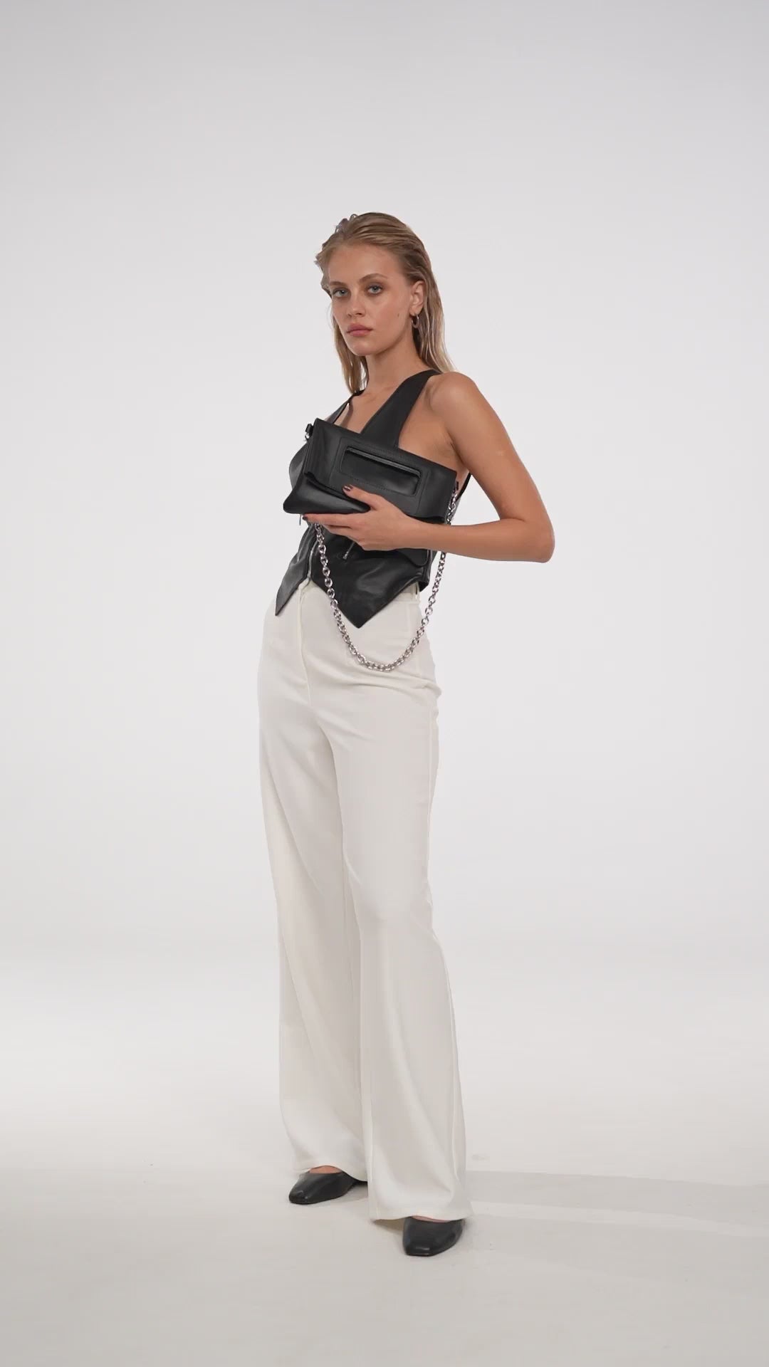 This soft leather Bag Adra with a chain is the perfect accessory for any occasion. The design features a bold metallic chain handle, a structured fold-over top, and a minimalist logo detail, making it both functional and stylish.