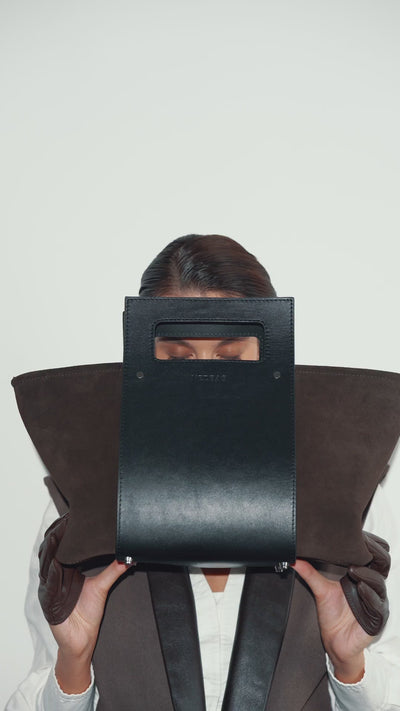 It is convenient to carry in hand or pressed to the body as a clutch. Calveth adds restraint and strength to the look while remaining minimalist and modern.