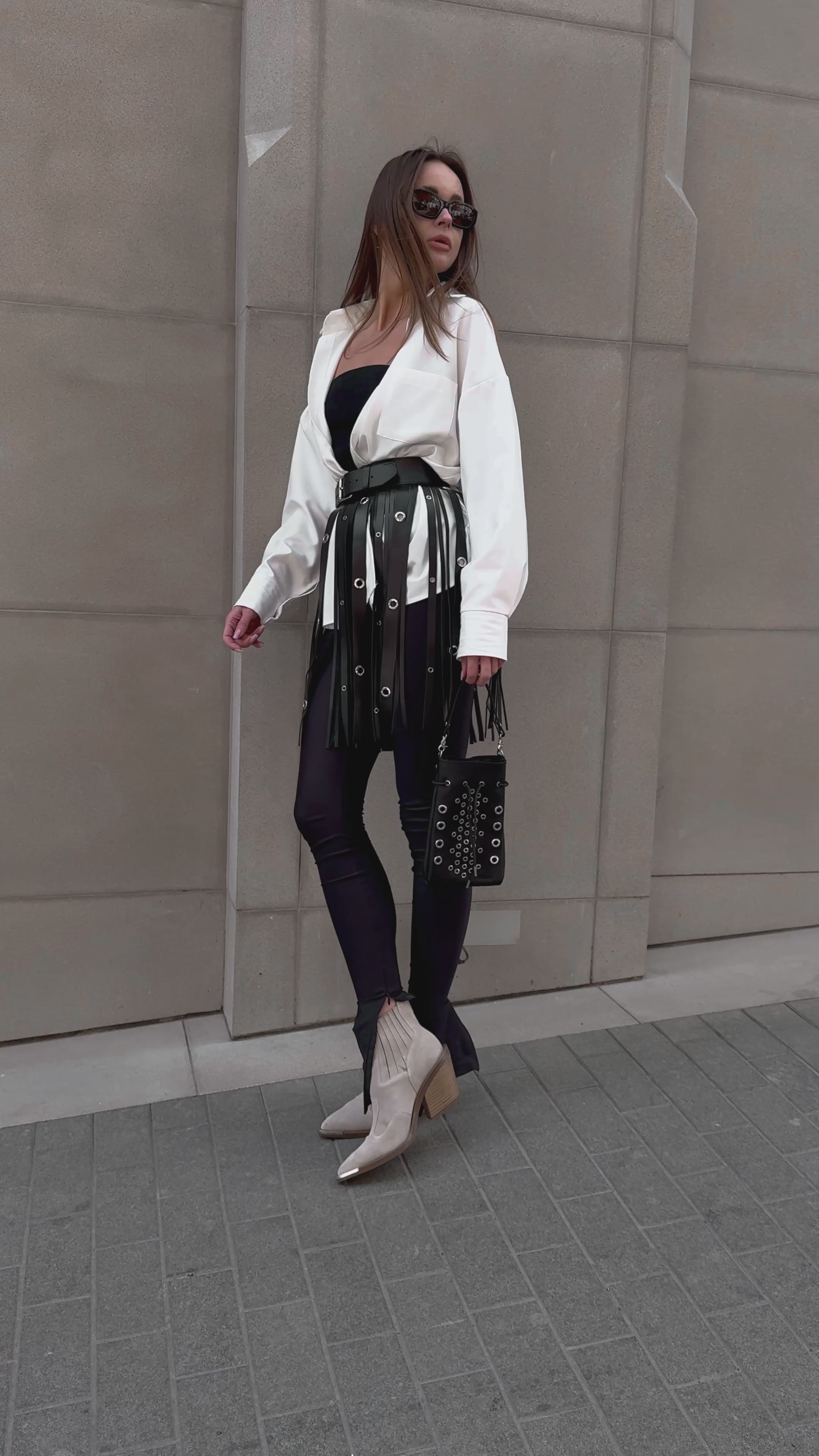 La borsa è decorata con occhielli metallici distribuiti uniformemente lungo il lato anteriore che aggiungono un elemento decorativo alla borsa. La combinazione della pelle con lacci e occhielli dona alla borsa un look unico e grintoso.