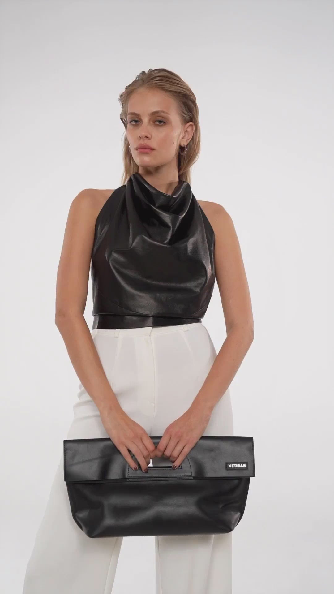 The Bag Rignon Mini is made from soft leather and has a simple, stylish design. With a folded top and hidden handle, this handmade bag shows off modern minimalism. It's a versatile accessory that adds a touch of elegance to any outfit.
