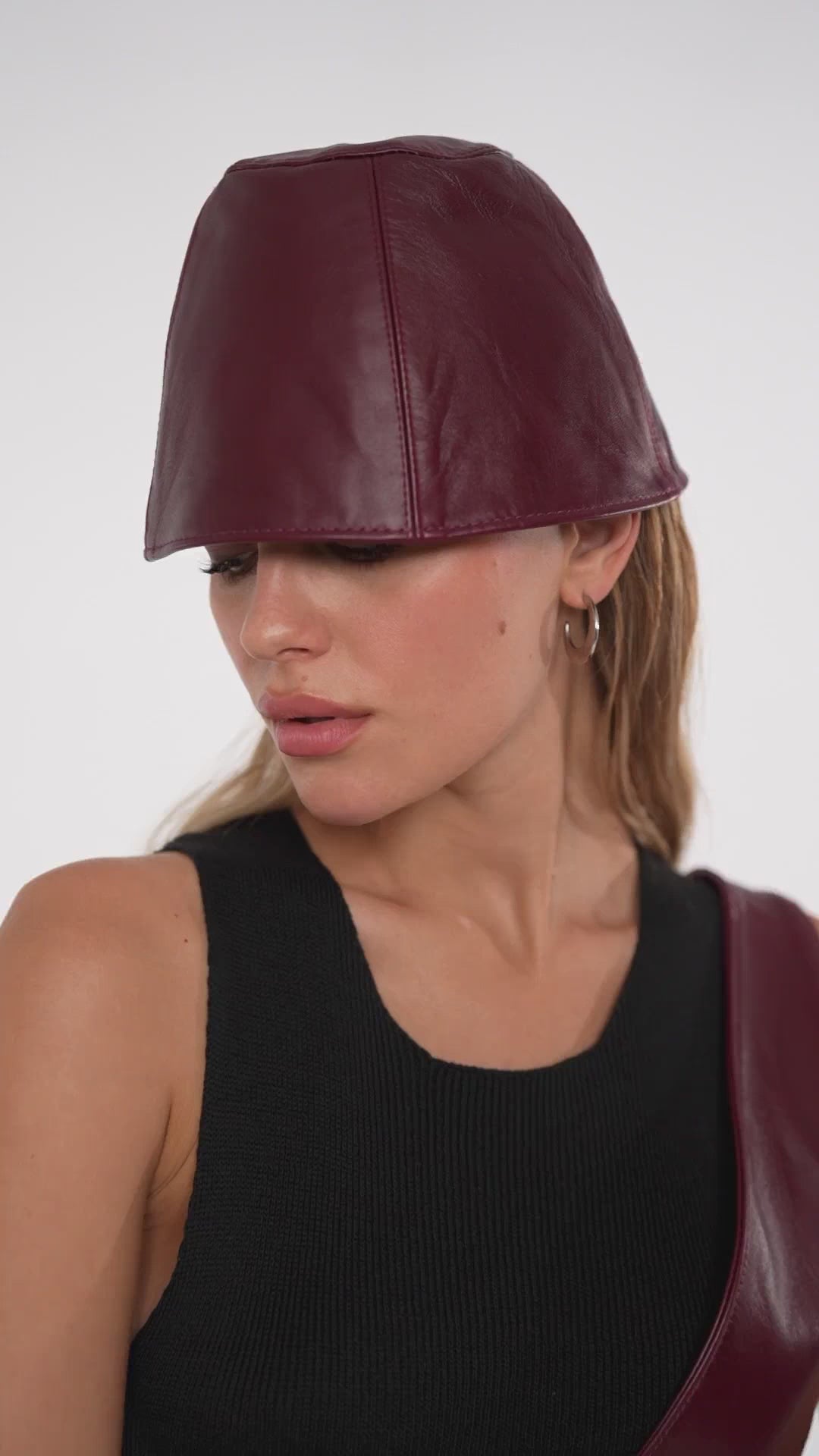 The Sansa Bucket Hat is crafted from a soft sheep leather, offering a luxurious and supple texture. It features a 100% cotton lining, ensuring comfort and breathability. This minimalist design combines elegance with a modern aesthetic, making it a versatile accessory for any outfit.