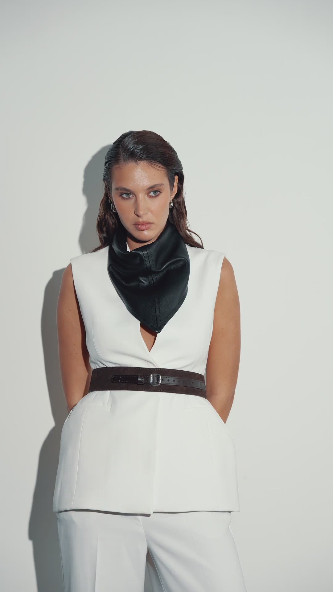 The Deyra kerchief is a neck accessory that has become a true trend this season. Made from natural leather or high-quality eco-leather, it ties around the neck and creates a striking accent in any look.