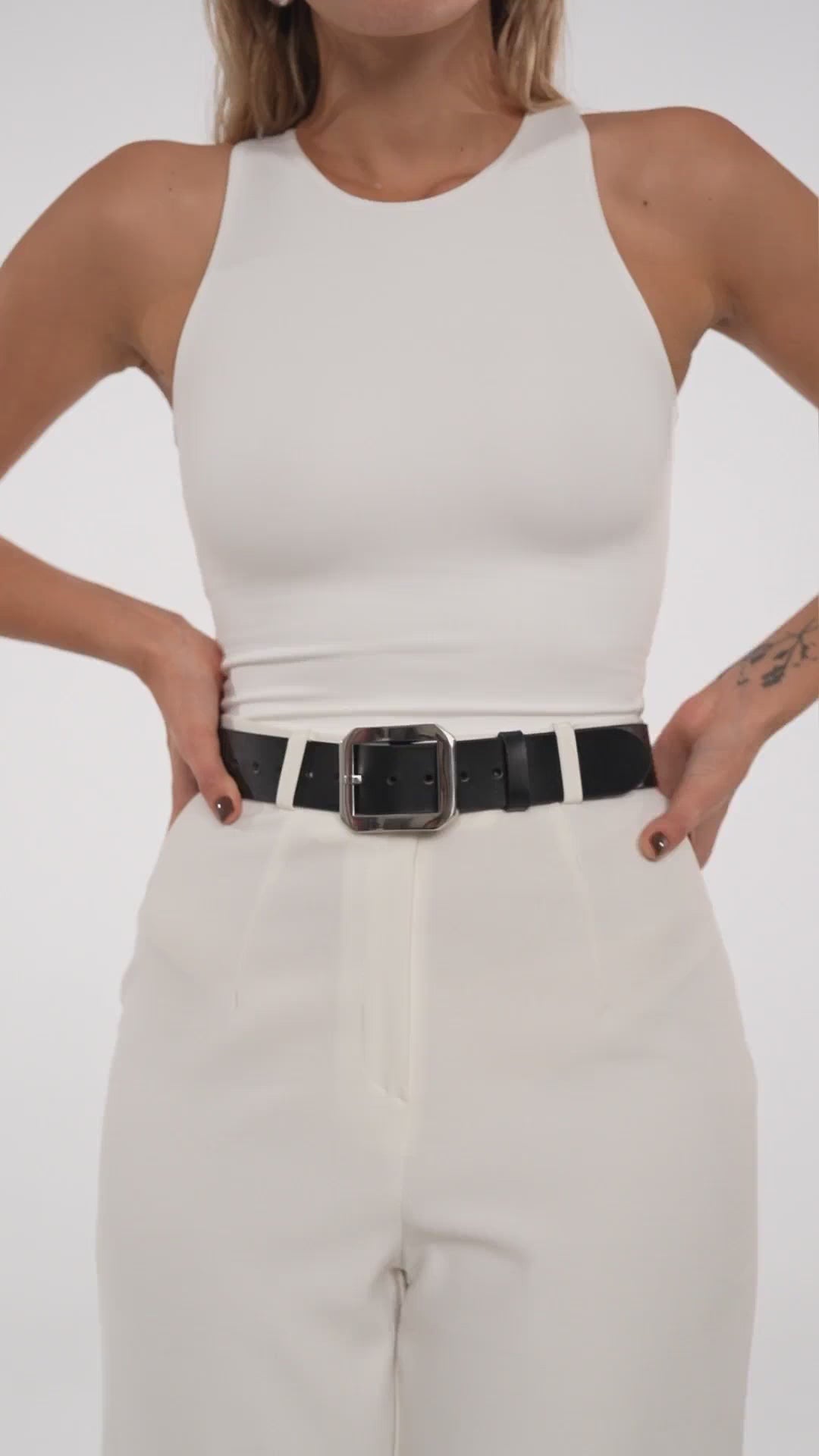 Aika belt — a minimalist and versatile accessory made of medium-stiff leather, with a sleek and elegant buckle. The smooth, even design ensures a classic style that complements any outfit effortlessly.
