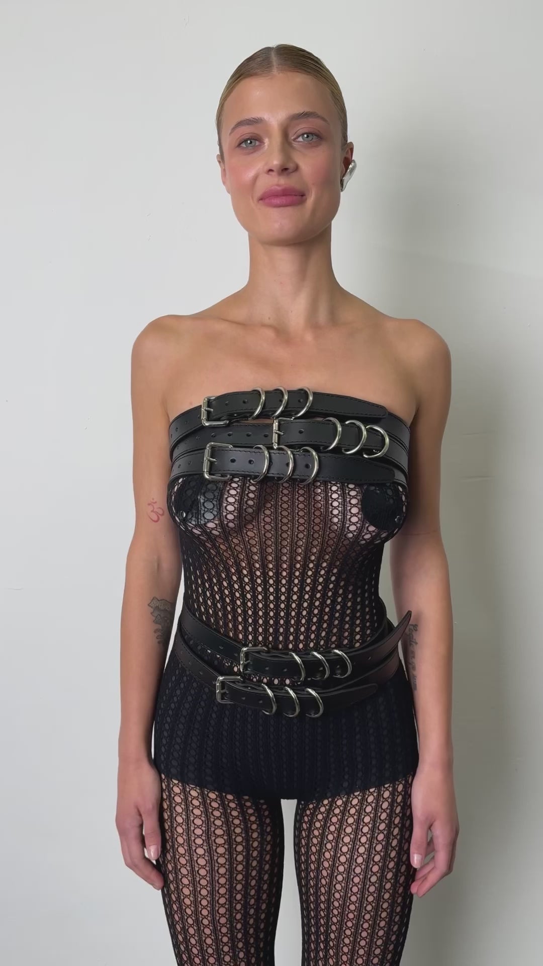 The five belts included in this set will allow you to create a complex look with several leather accessories.