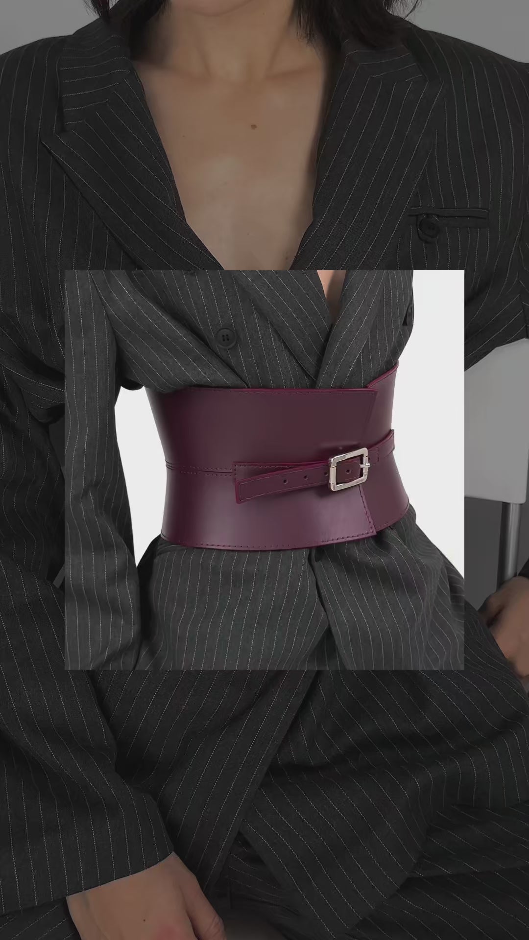 A stylish wide belt Jordana that beautifully hugs the waist and highlights your figure. Its design features a narrow strap connecting the wider sections, adding a unique touch. Made of medium-stiff leather, it holds its shape perfectly while providing a flattering fit.